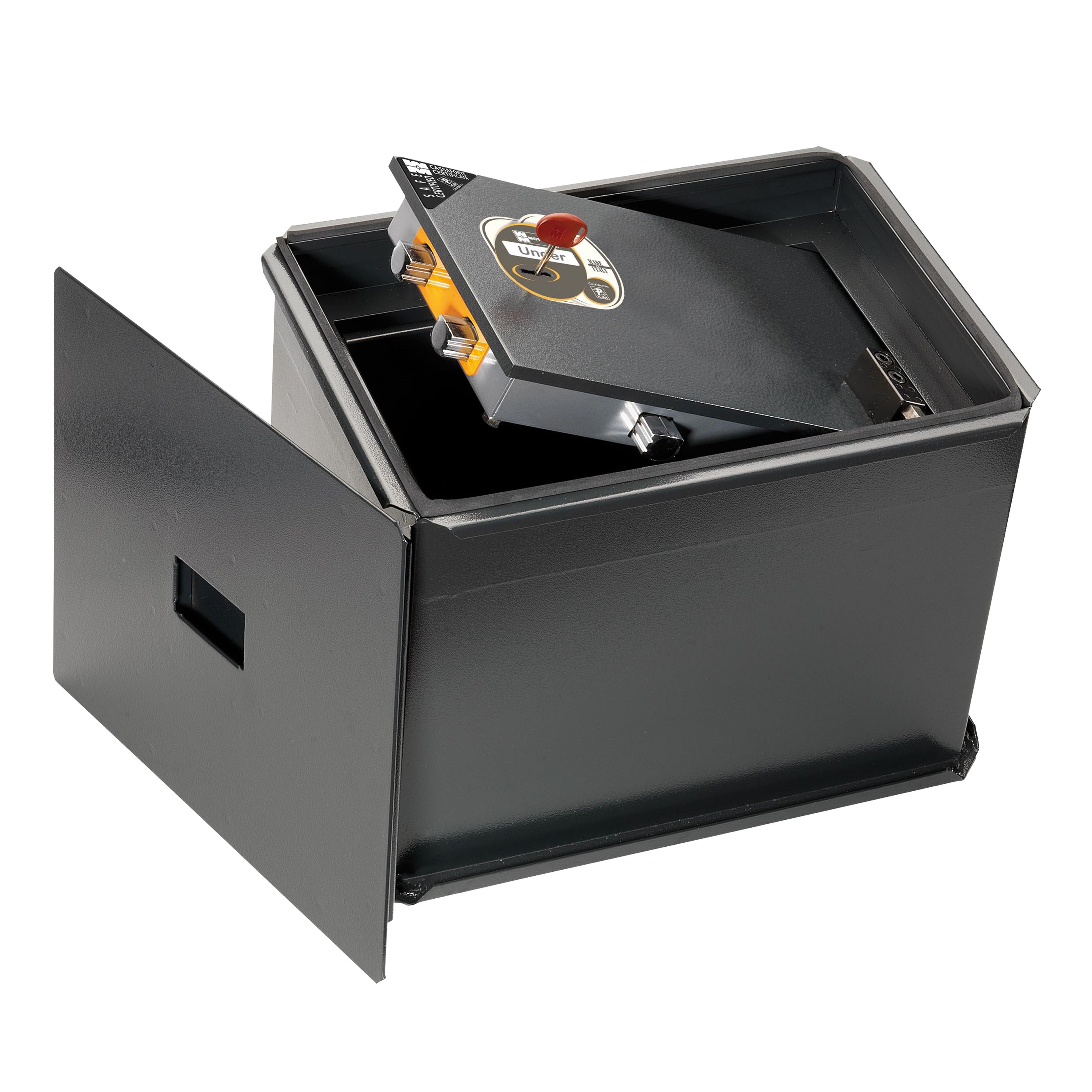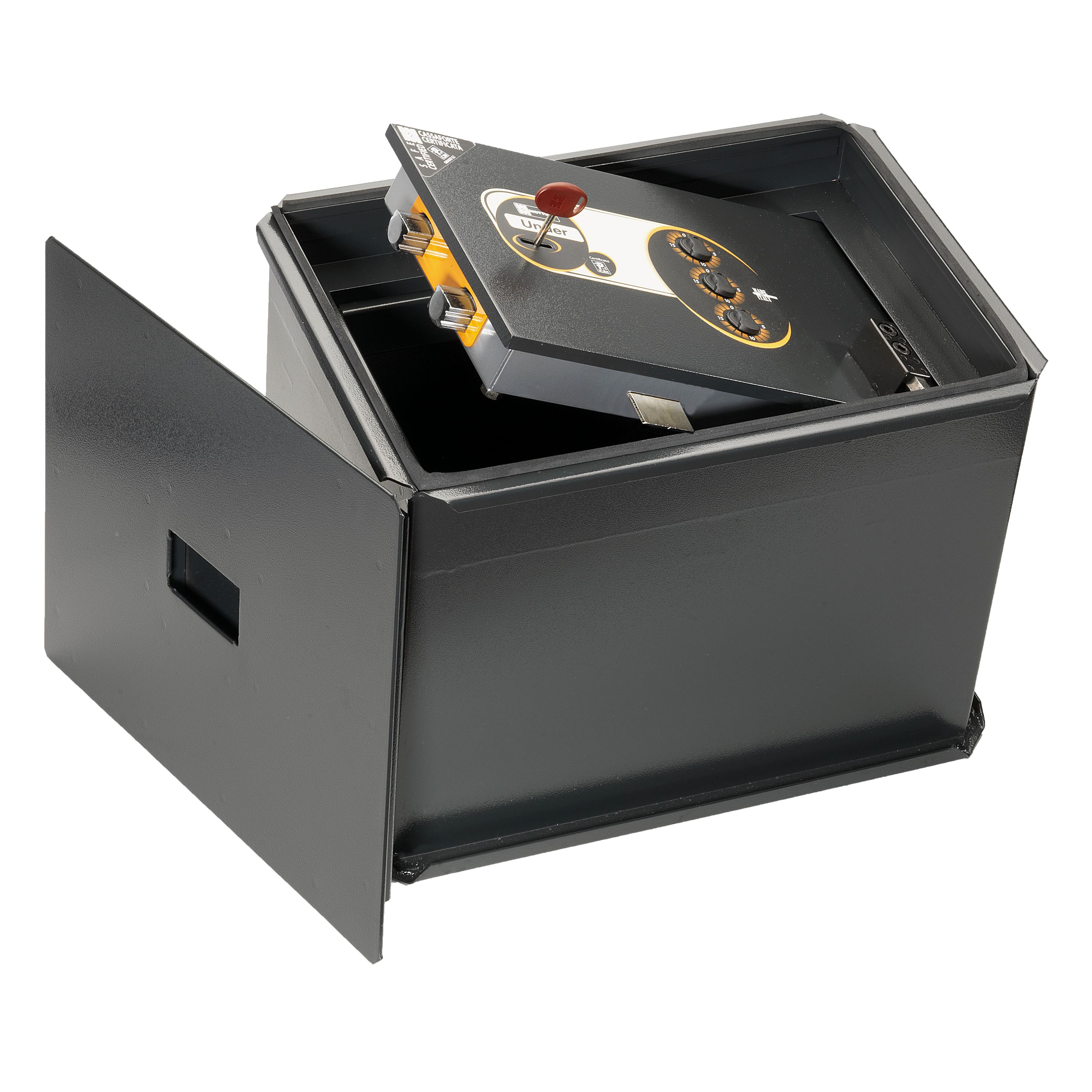 This range of floor safes is available with key or key and combination locking system. It features manganese door protection extended to the front bolts, a 10 mm door thickness and 12 mm frame. Equipped with moulded bolts.