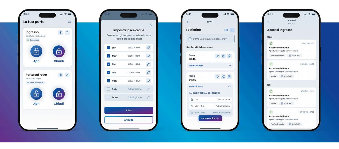 Frutto di un importante lavoro che ha coinvolto tutto il nostro team di sviluppo, la nuova app ha come obiettivo quello di rendere la nostra piattaforma di accesso smart bTECHNOLOGY sempre più adatta ad affrontare le prossime sfide della tecnologia smart.