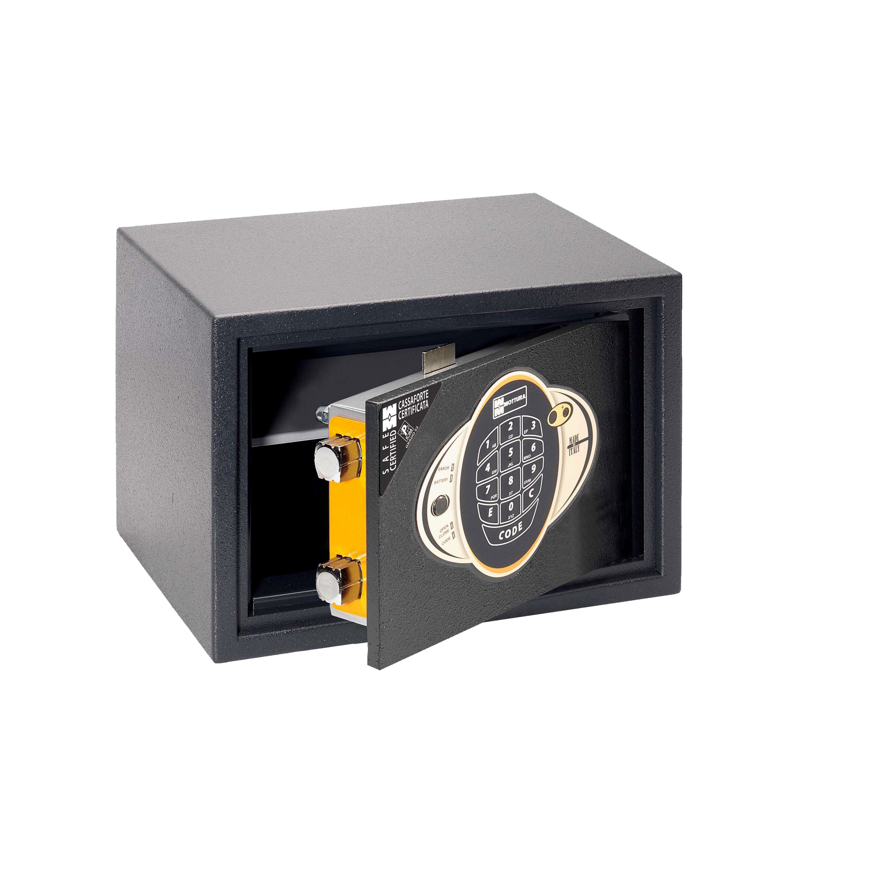Disponibili con chiusura elettronica o a chiave o entrambe, è disponibile anche nella versione con combinatore elettronico "Rotary". Tutti dotati di chiavistelli brevettati Mottura.