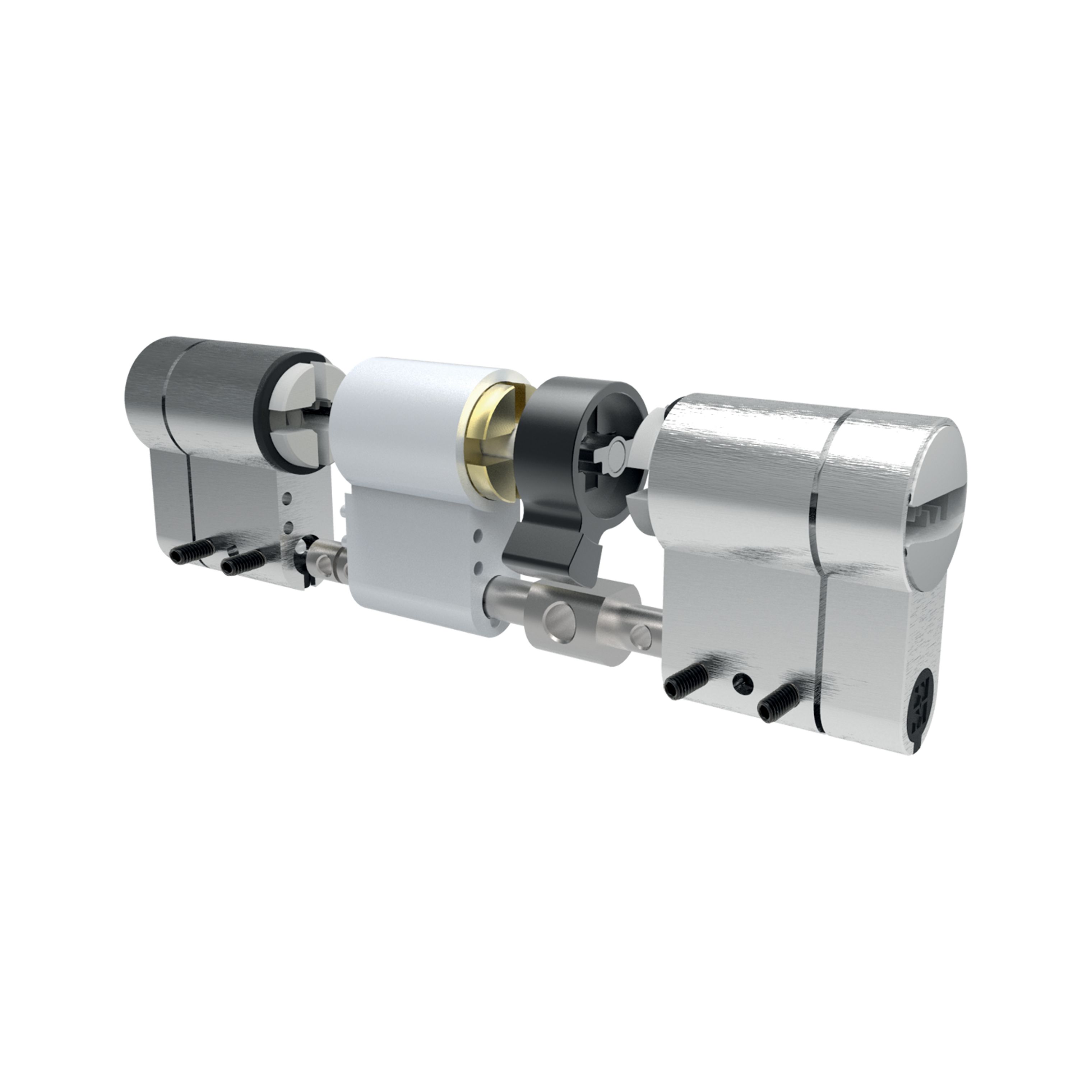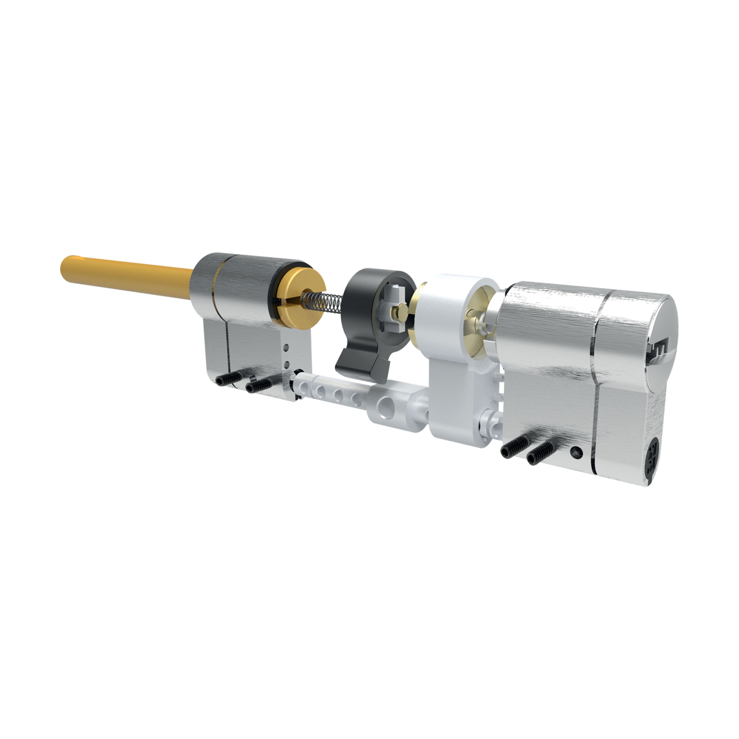 CHAMPIONS® MODULAR è un cilindro modulare che utilizza la cifratura a perni sagomati (+ - x /), a protezione dei duplicati. È ideale per coprire tutti gli spessori porta con lunghezze comprese tra 31-31 e 71-71 (fino a 91-141 tramite l'apposita barretta di montaggio) con combinazioni da comporre tramite un semplice CONFIGURATORE.
