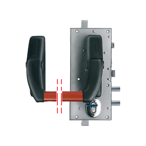 - Maniglione antipanico - Il maniglione è realizzato in uno speciale polimero altamente resistente ad urti ed abrasioni. La barra orizzontale è coperta con un trattamento antimicrobico.