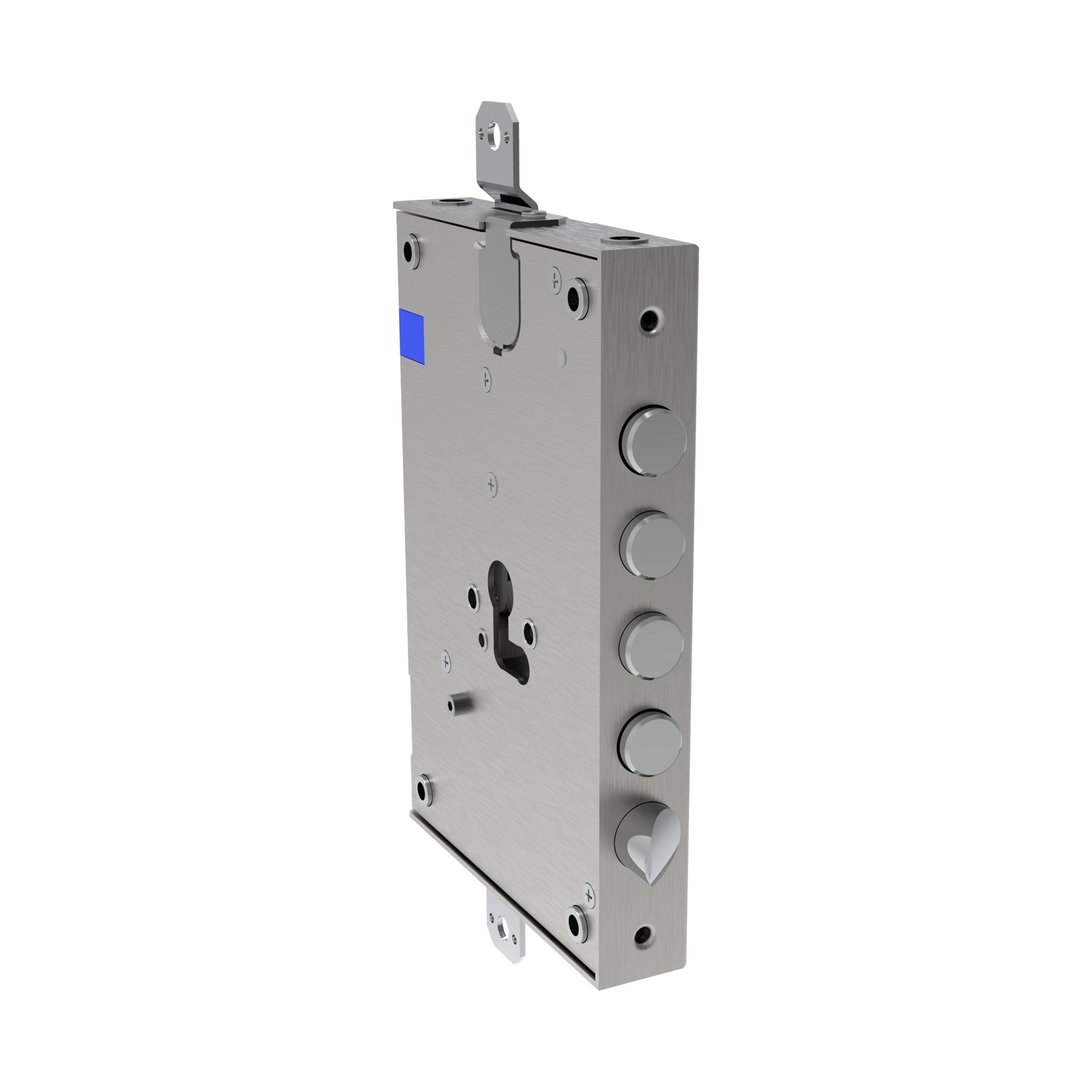 bBLOCK è una serratura meccatronica smart, ovvero una serratura interamente meccanica che si sblocca prima elettronicamente e poi meccanicamente. È predisposta per cilindro europeo, disponibile sia in versione pomolo-pomolo che in versione chiave-pomolo, per porte blindate.